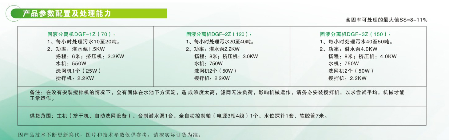 用于养殖、造纸、屠宰、皮革、制糖、酿酒、餐厨垃圾、纺织、印染、石化等小型工业废水处 理中,去除悬浮物、漂浮物、沉淀物等固态物质、用于造纸、酒精、淀粉、食品加工等行业回收纤维、渣料等有用物质。用于污泥或河道清淤预处理。